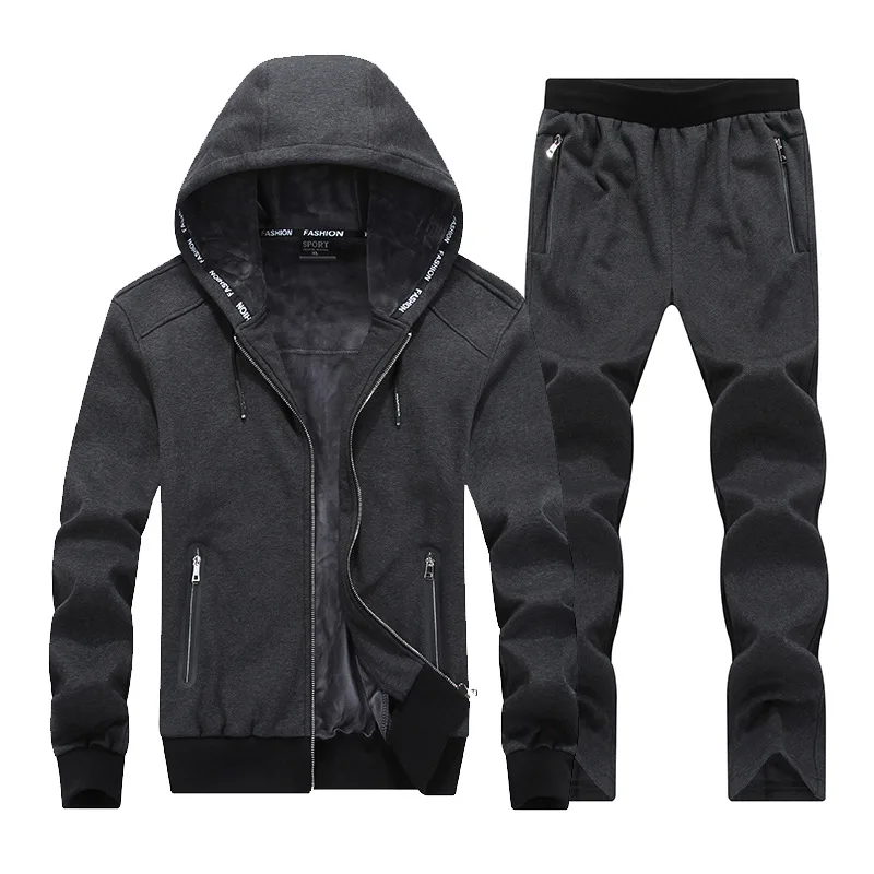 Best Quality Men Running Set Clothing Sportswear 2018 Winter Fleece Velvet Hoodies Sweatshirts Sets Tracksuits S