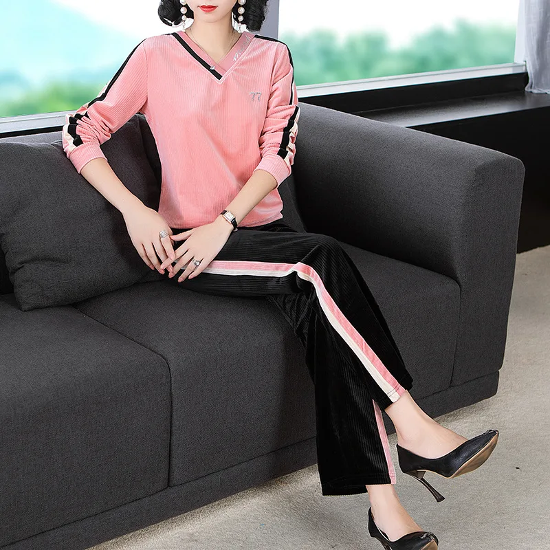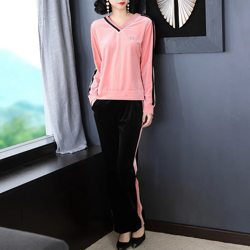 HIGH QUALITY Tracksuit Women Plus Size L-4XL 2019 Autumn Winter Velvet Korean Casual Women's Sports Suit 2 PCS S