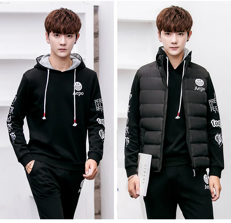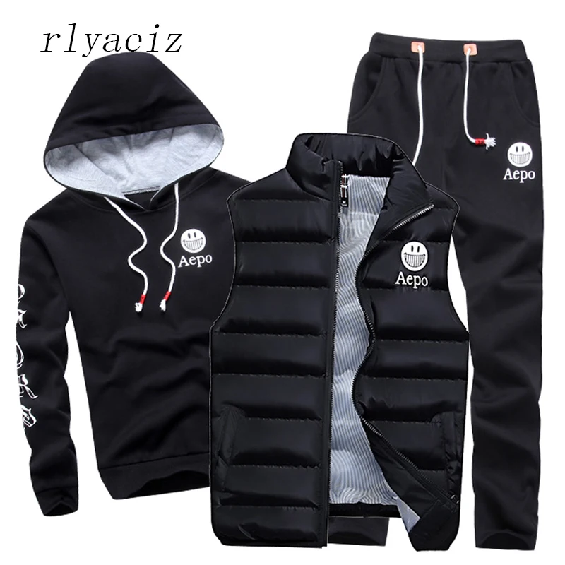 BEST Rlyaeiz High Quality 2017 Autumn Sportswear Men Casual Sporting Suits Hooded Hoodies + Pants + Vest